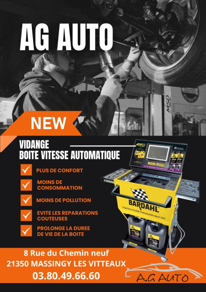 Depuis 2001, notre garage AG Auto, membre du réseau Eurorepar Car Service, situé à Massingy-lès-Vitteaux, près de Vitteaux (21, Côte-d’Or), accompagne les particuliers et les professionnels dans la vente et la réparation de véhicules et d’utilitaires. Repris en 2022 par M. Goubard, mécanicien expérimenté depuis plus de 10 ans, l’établissement bénéficie d’une atmosphère conviviale. L’équipe comprend notamment un mécanicien fidèle, présent depuis plus de 20 ans.